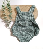 Capture adorable sitter photos with our handcrafted green checkered dungarees for boys. Made of soft fabric with adjustable braces for a perfect fit, these handmade dungarees are ideal for professional baby photo sessions. International shipping available to France, Germany, Italy, Spain, Austria and other European countries.