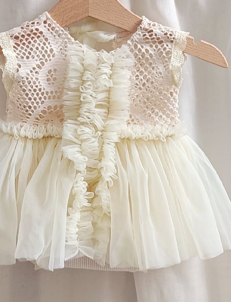 Designed with elegance in mind, this body-dress highlights your little model's natural beauty. The neutral light tones and classic style ensure that the first photos of baby will remain timeless and stylish.