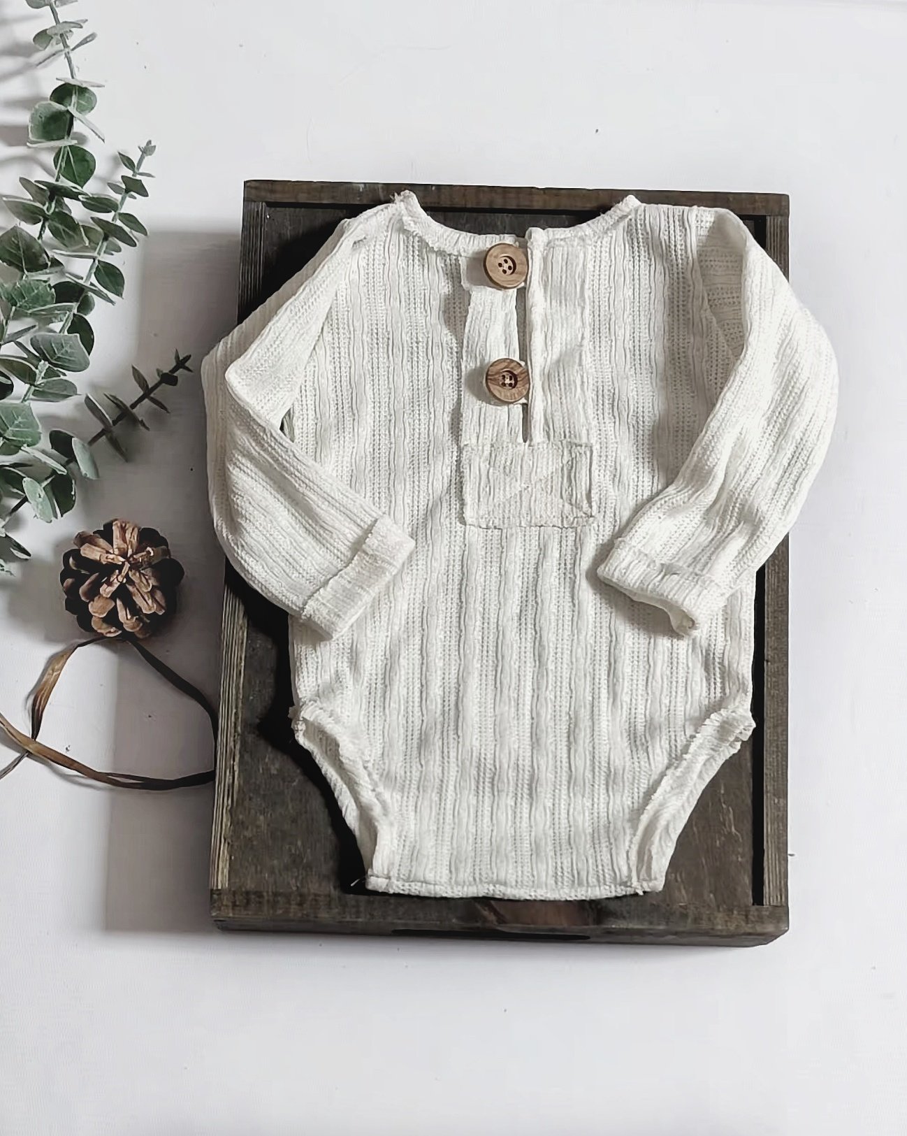 Designed with two front buttons, this babygrow is easy to put on and take off, providing a secure and comfortable fit for babies aged 9–12 months. The simple design allows quick outfit changes during the session.
