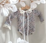 Designed with an open back tied with ribbons, this bodysuit allows easy outfit changes and ensures a comfortable fit for your little model. The tie closure adds a sweet, handcrafted charm to the overall look.
