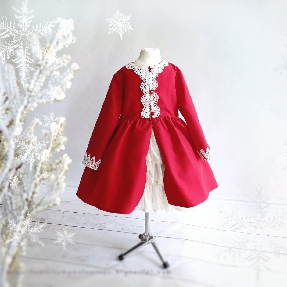 Our Red Christmas Coat is the perfect choice for capturing magical holiday portraits. Handmade with care from elegant fabric and finished with delicate lace, this outfit brings festive charm and timeless elegance to every photo session.