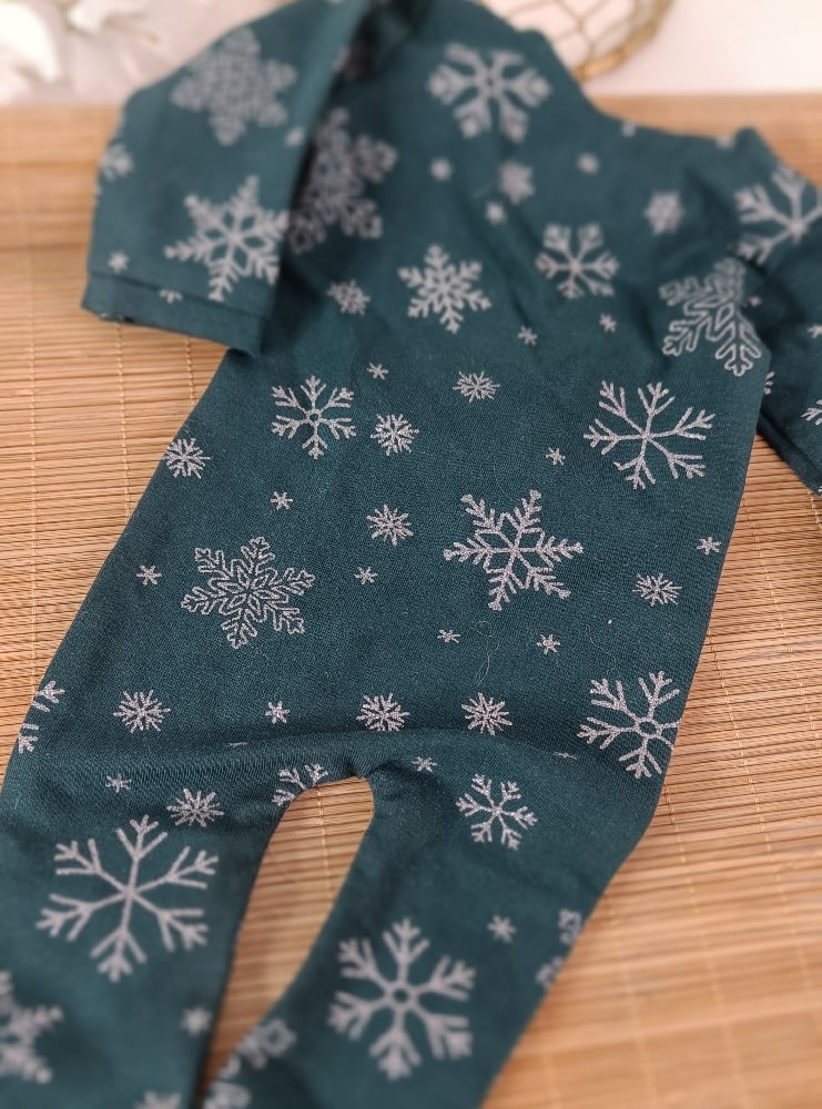 Christmas newborn romper for photo shoots | emerald | snowflakes