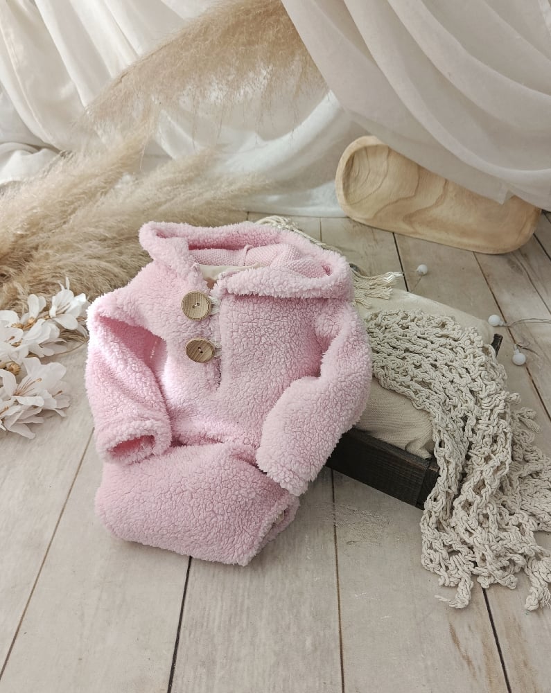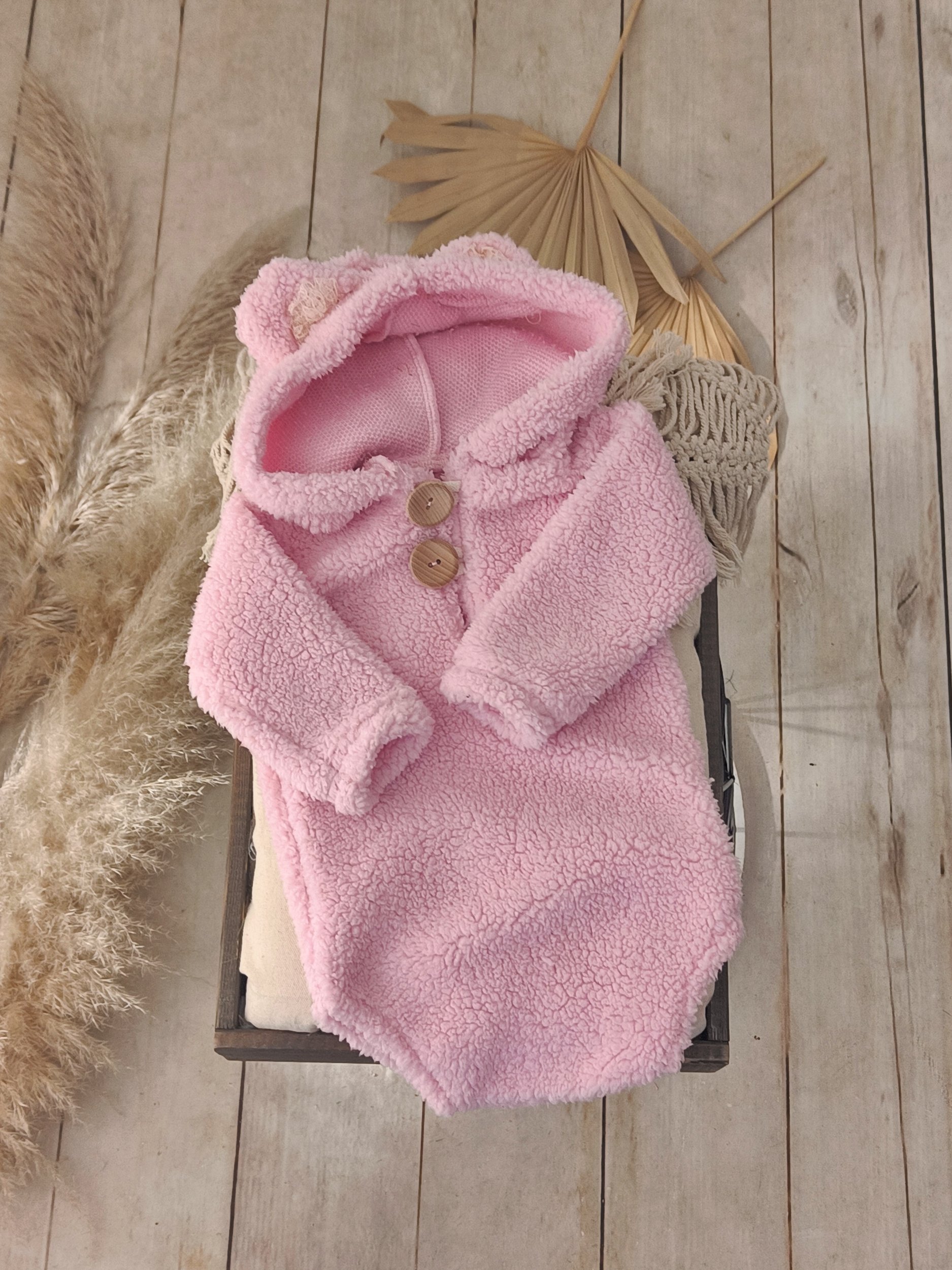Capture the cutest moments with our pink fluffy sitter hooded bodysuit with bear ears. Made of soft and elastic fabric in a charming pink shade, featuring long sleeves and two front buttons for easy dressing. Cozy, adorable, and perfect for professional sitter photo sessions. International shipping available to France, Germany, Italy, Spain, Austria and other European countries.