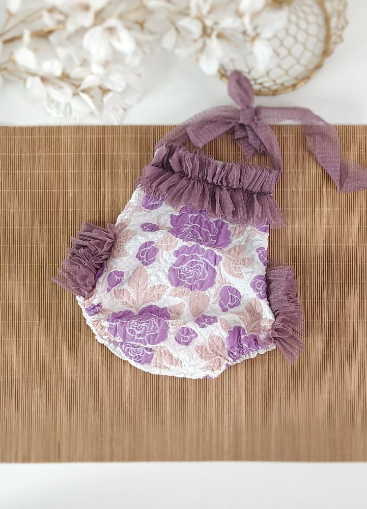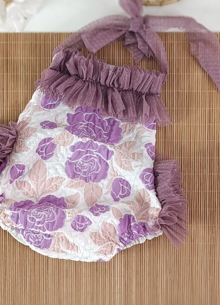 Photoshoot body | Marella romper | age 9-12 months | dark purple flowers | sitter