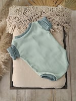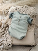 This handcrafted newborn bodysuit is designed for photography sessions, combining soft sage and celadon green tones with a minimalist and modern silhouette. Perfect for creating clean, natural and timeless newborn portraits in studio or lifestyle setups.