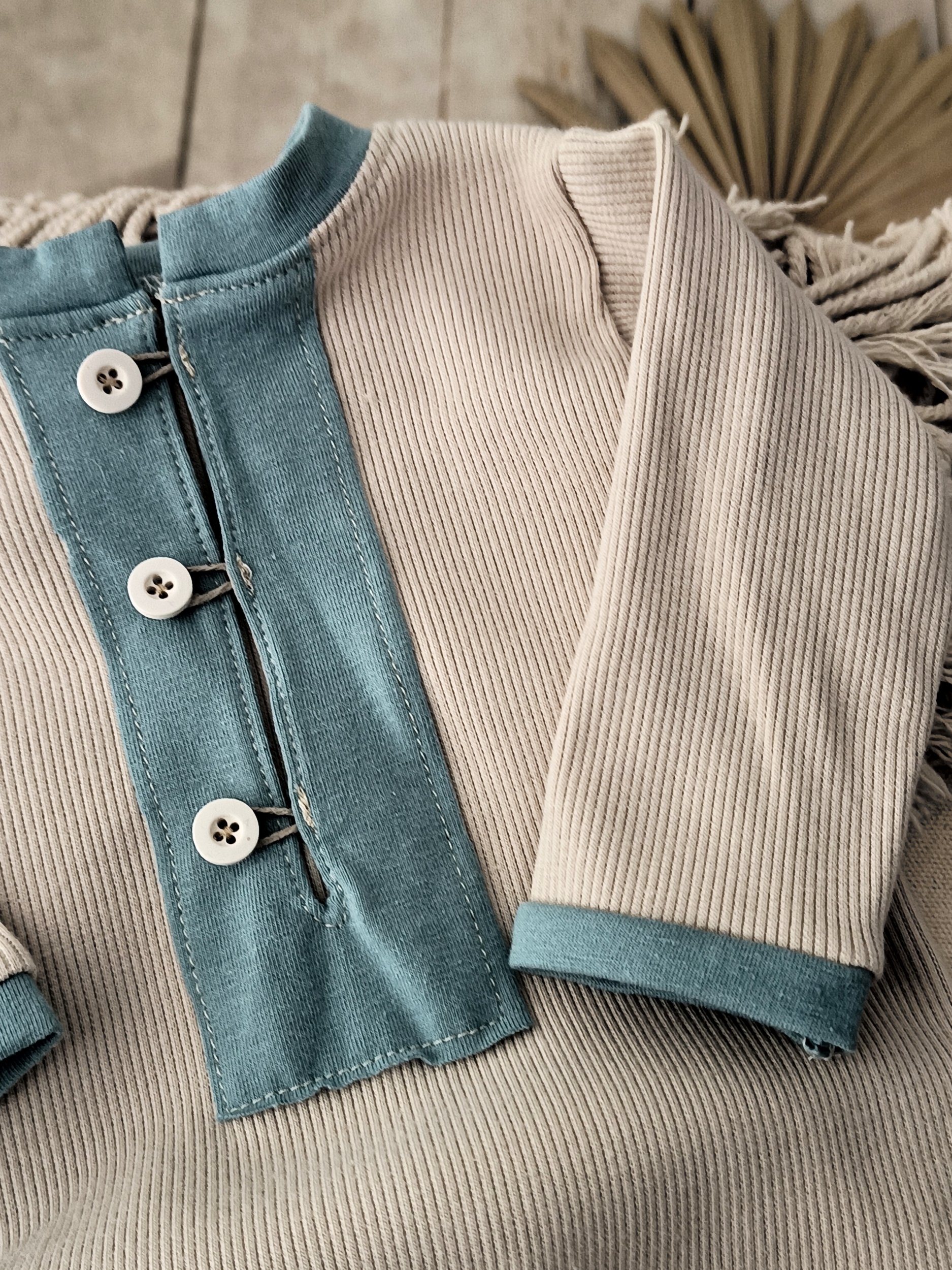 Photo prop | Newborn boys romper Alex | beige | dusty blue