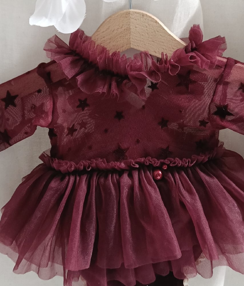 Designed with elegance in mind, this body-dress highlights your little model's natural beauty. The burgundy tones and classic style ensure that the first photos of newborn baby will remain timeless and stylish.