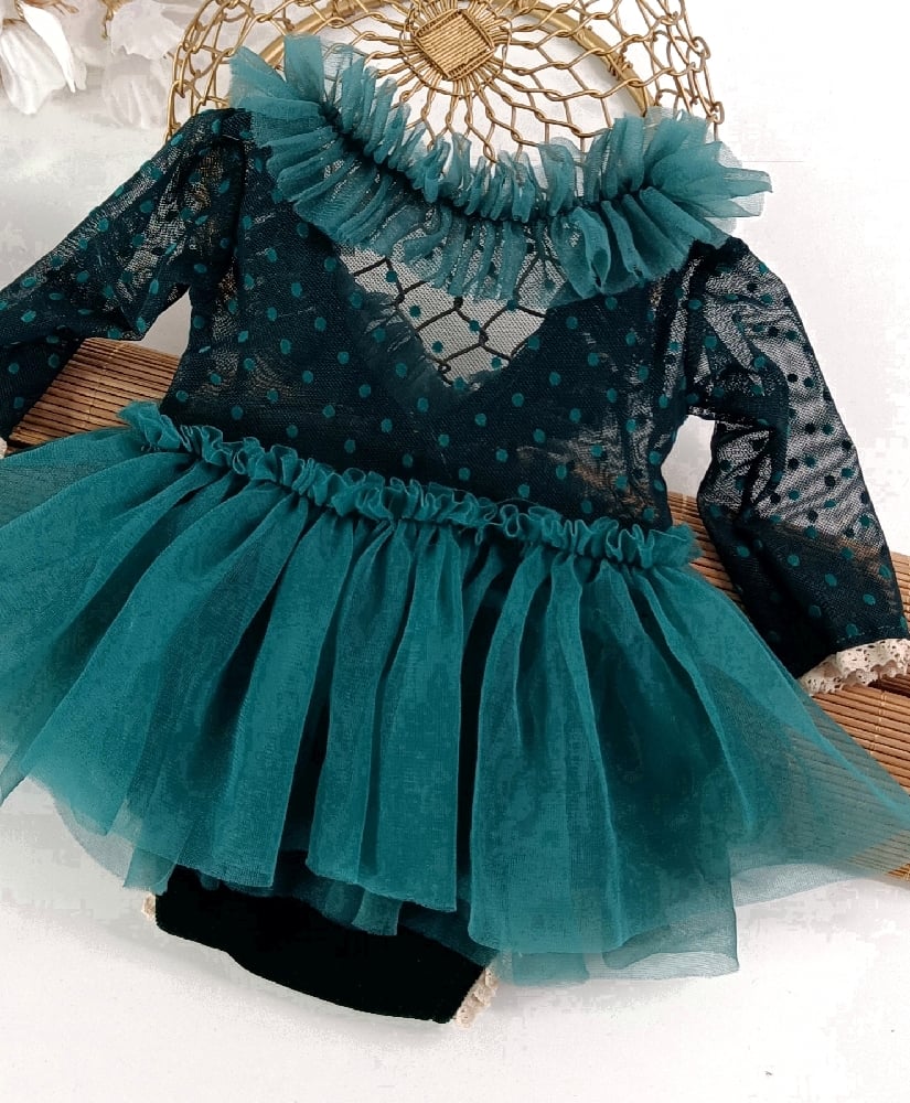 Newborn dress for photo shoots | Gabrielle | emerald dots