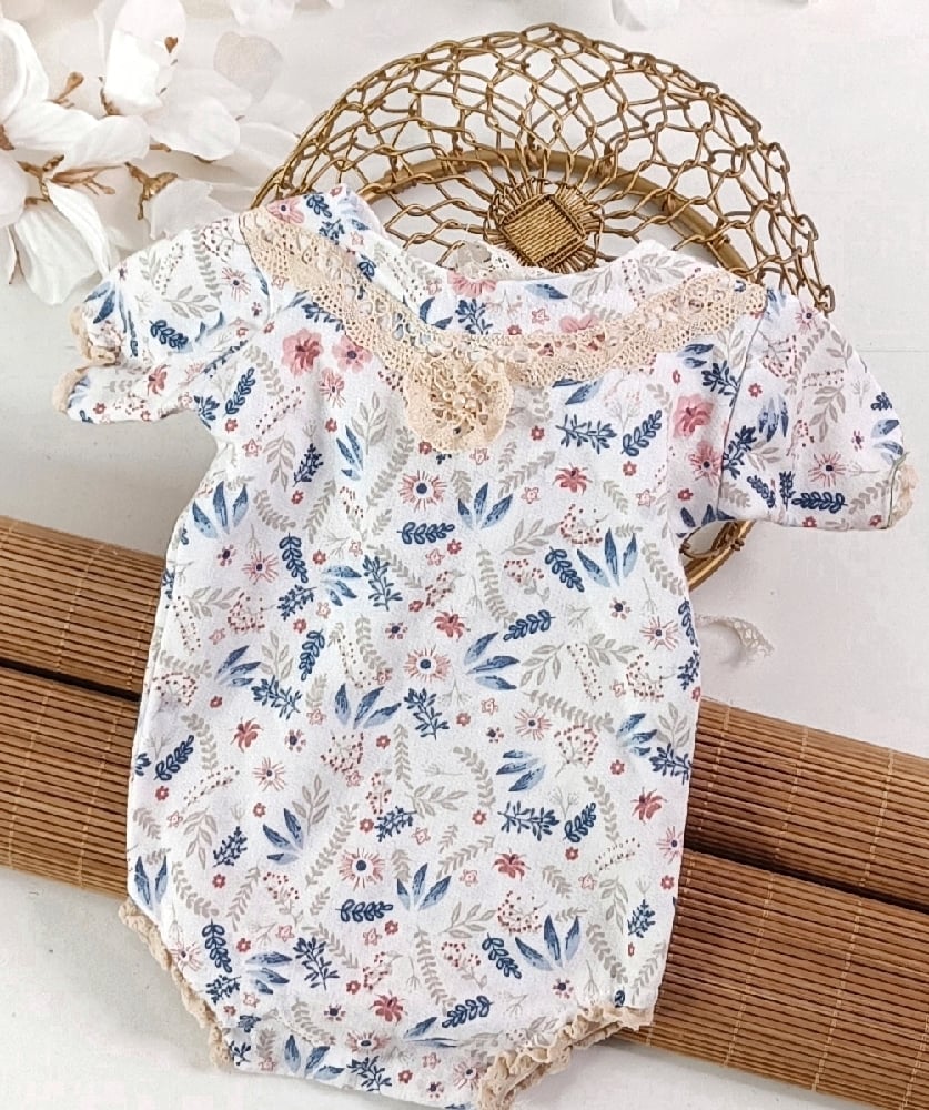 Each bodysuit is handmade with care using soft, premium materials. The combination of floral patterns, lace details, and thoughtful design makes it a perfect photography prop for capturing natural and elegant newborn portraits.