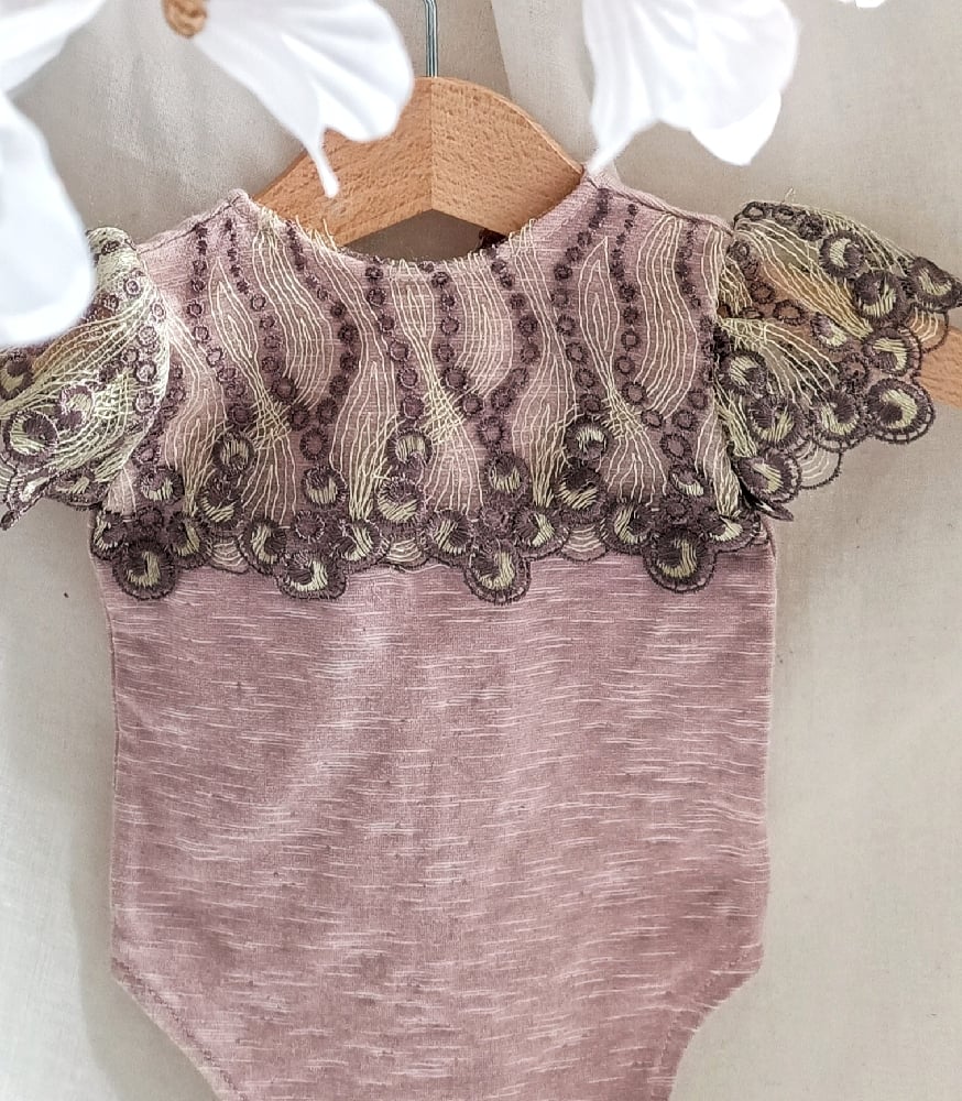 Add a touch of elegance and charm to your newborn photography with our handcrafted Dusty Pink Melange Bodysuit. Designed with decorative coloured lace sleeves and delicate lace in the top front, this bodysuit blends softness, beauty, and practicality. Made for comfort and easy dressing, it features an open back fastened with a button at the neck — perfect for capturing timeless newborn portraits. International shipping available to France, Germany, Italy, Spain, Austria, and other European countries.