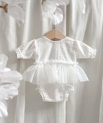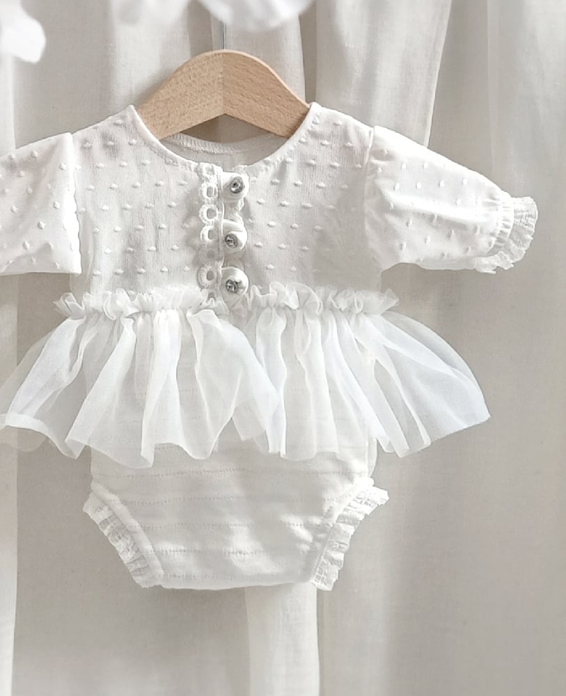 With this white newborn body-dress, every photo radiates elegance, softness, and innocence — making it the perfect outfit for classic, fine-art newborn photography.
