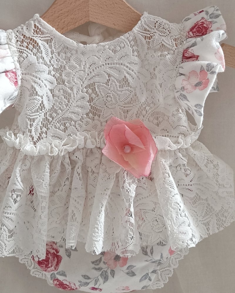 Newborn girls body-dress for photoshoots | Emily | floral pink