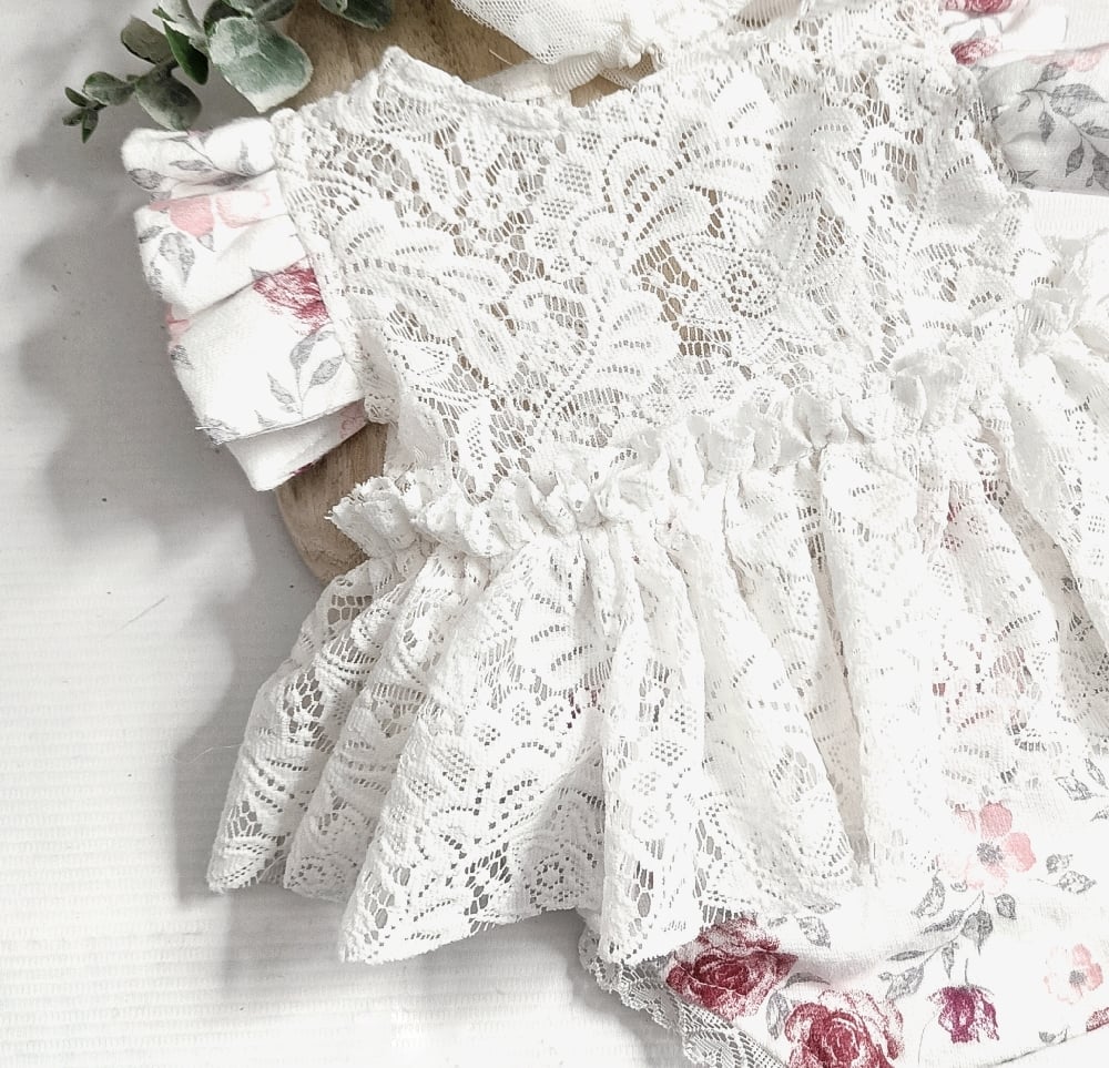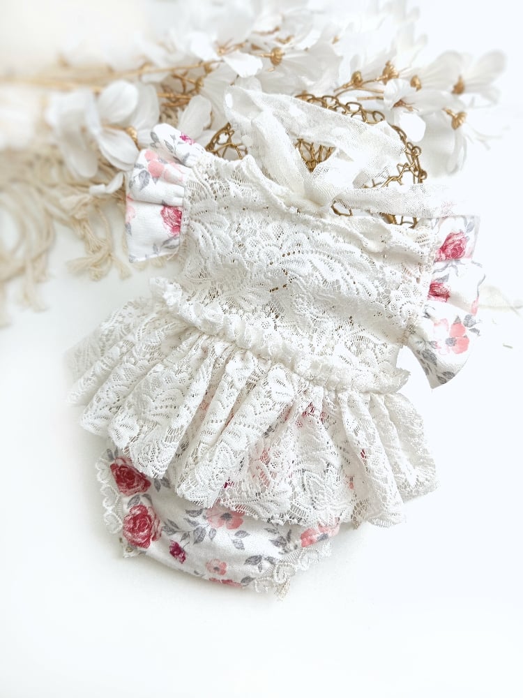 Designed with elegance in mind, this body-dress highlights your little model's natural beauty. The floral tones and classic style ensure that the first photos of newborn baby will remain timeless and stylish.