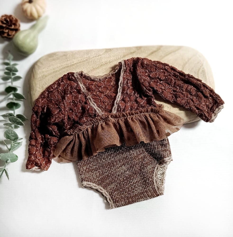 This newborn photography bodysuit Lara is prefect outfit for photoshootPRODUCT FEATURES:• size: newborn• It is made of soft and elastic fabrics• with open back• easy to wear and comfortable• non transparent bottom• decorated with frills• Handmade newborn photography bodsyuit