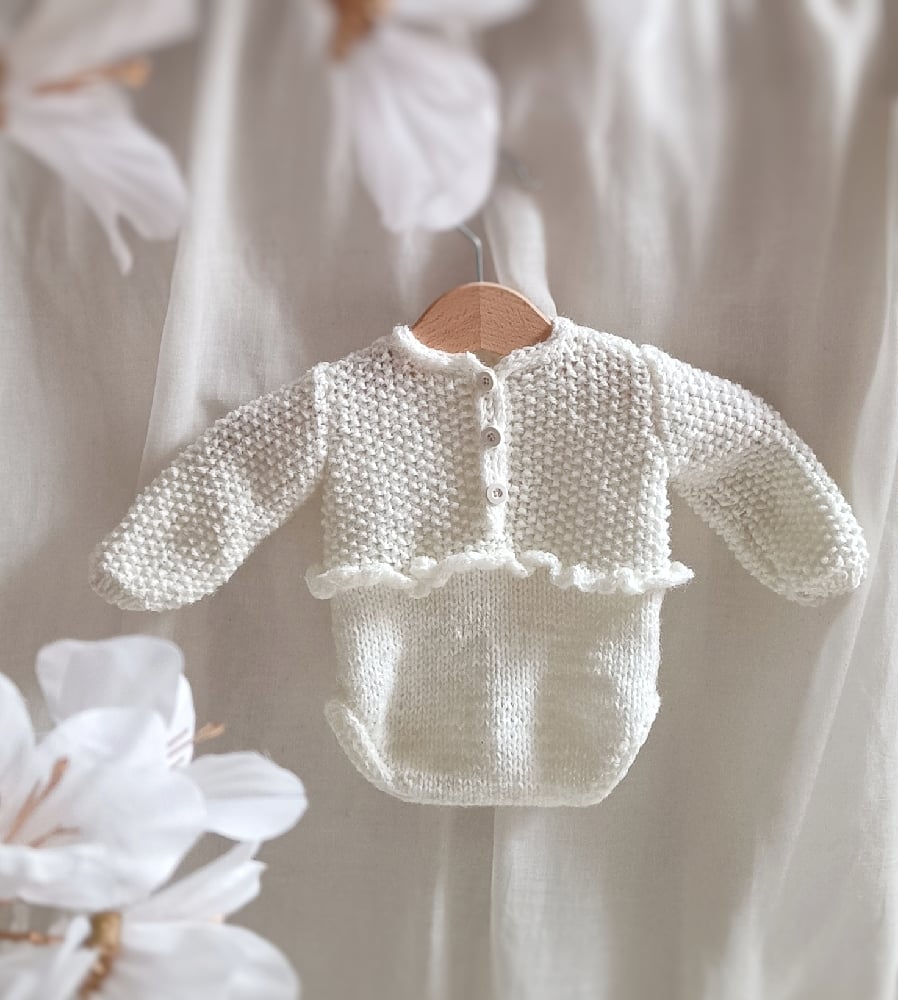 Newborn girls knitted bodysuit for photoshoots | Aila | creamy