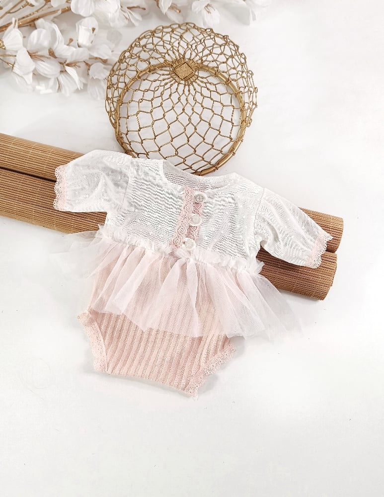 Designed with elegance in mind, this body-dress highlights your little model's natural beauty. The pastel tones and classic style ensure that the first photos of newborn baby will remain timeless and stylish.