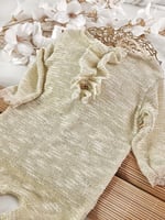 Capture delicate and timeless newborn girl portraits with our handcrafted Newborn Girl Onesie in soft beige with a subtle golden thread. Light, elegant, and full of refined details, this outfit is designed for professional newborn photography sessions where softness and beauty go hand in hand. International shipping available to France, Germany, Italy, Spain, Austria, and other European countries.