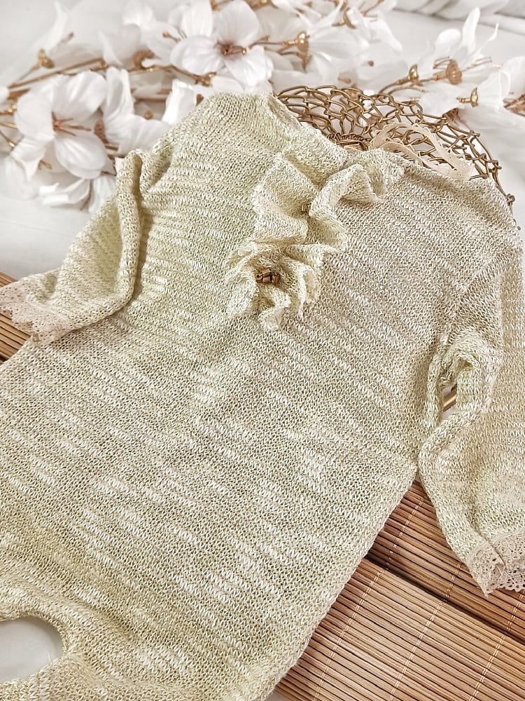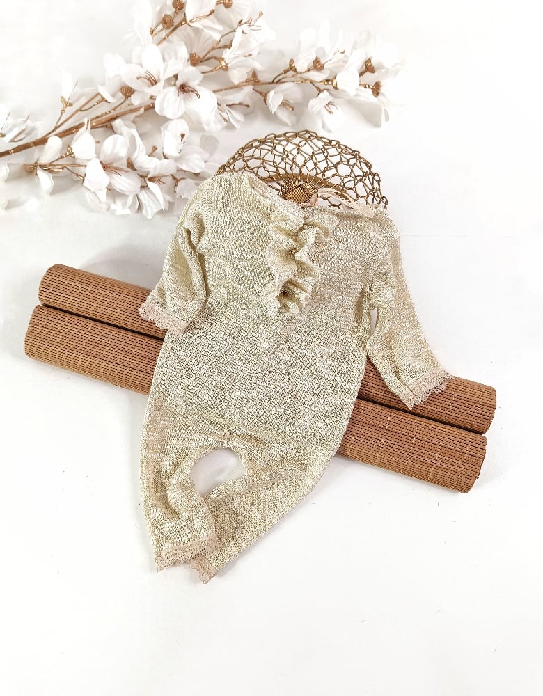 With this beige and gold newborn girl onesie, every photo becomes gentle, luminous, and timeless — perfect for fine art and classic newborn photography sessions.