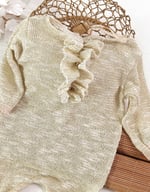 Finished with a decorative ruffle (jabots-style) on the front, this onesie adds classic charm and delicate texture without overpowering the baby’s natural beauty.