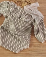 This newborn bodysuit is handmade with care, combining comfort, softness, and a natural aesthetic. The neutral brown tone with delicate dots makes it ideal for rustic, boho, and natural-style newborn sessions.