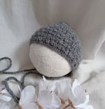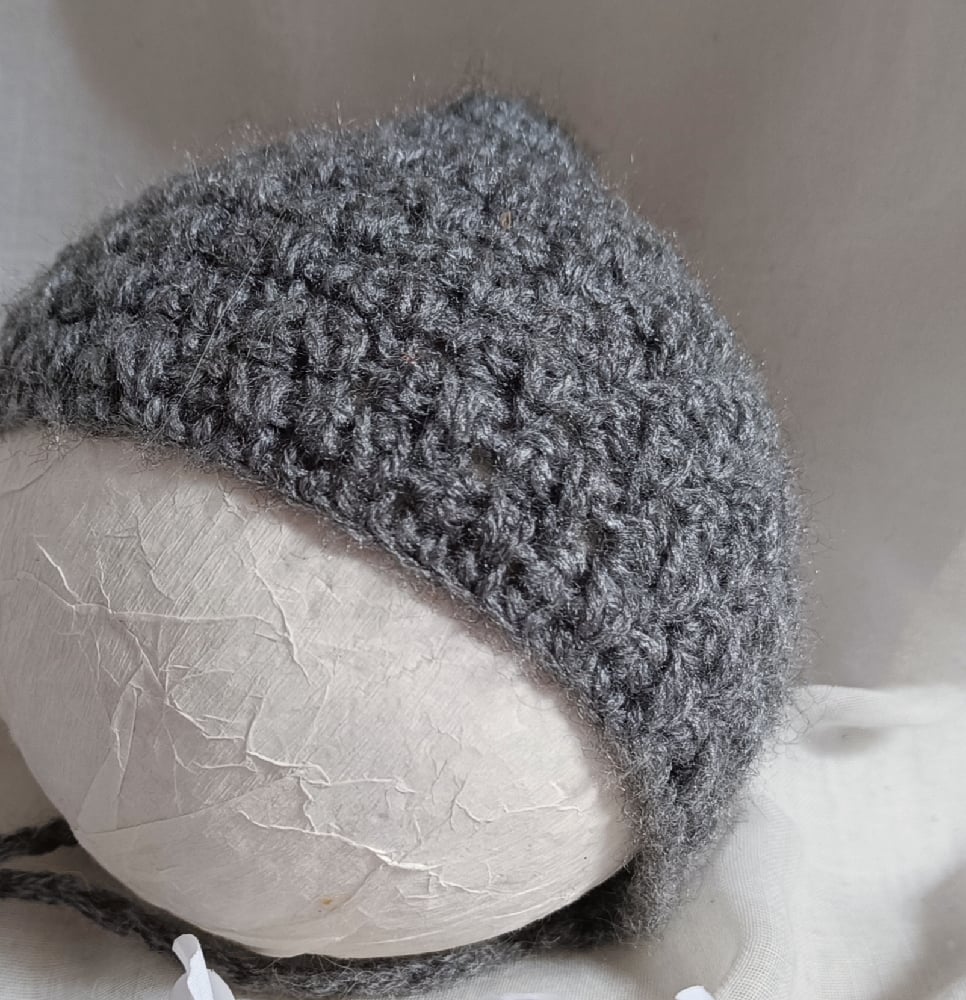 With this soft, knitted dark grey bonnet, every photo radiates simplicity and elegance. Ideal for natural, cozy, and timeless baby photography.