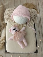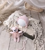 Knitted photo prop | photoshooting set | lady teddy bear and bonnet | pink