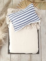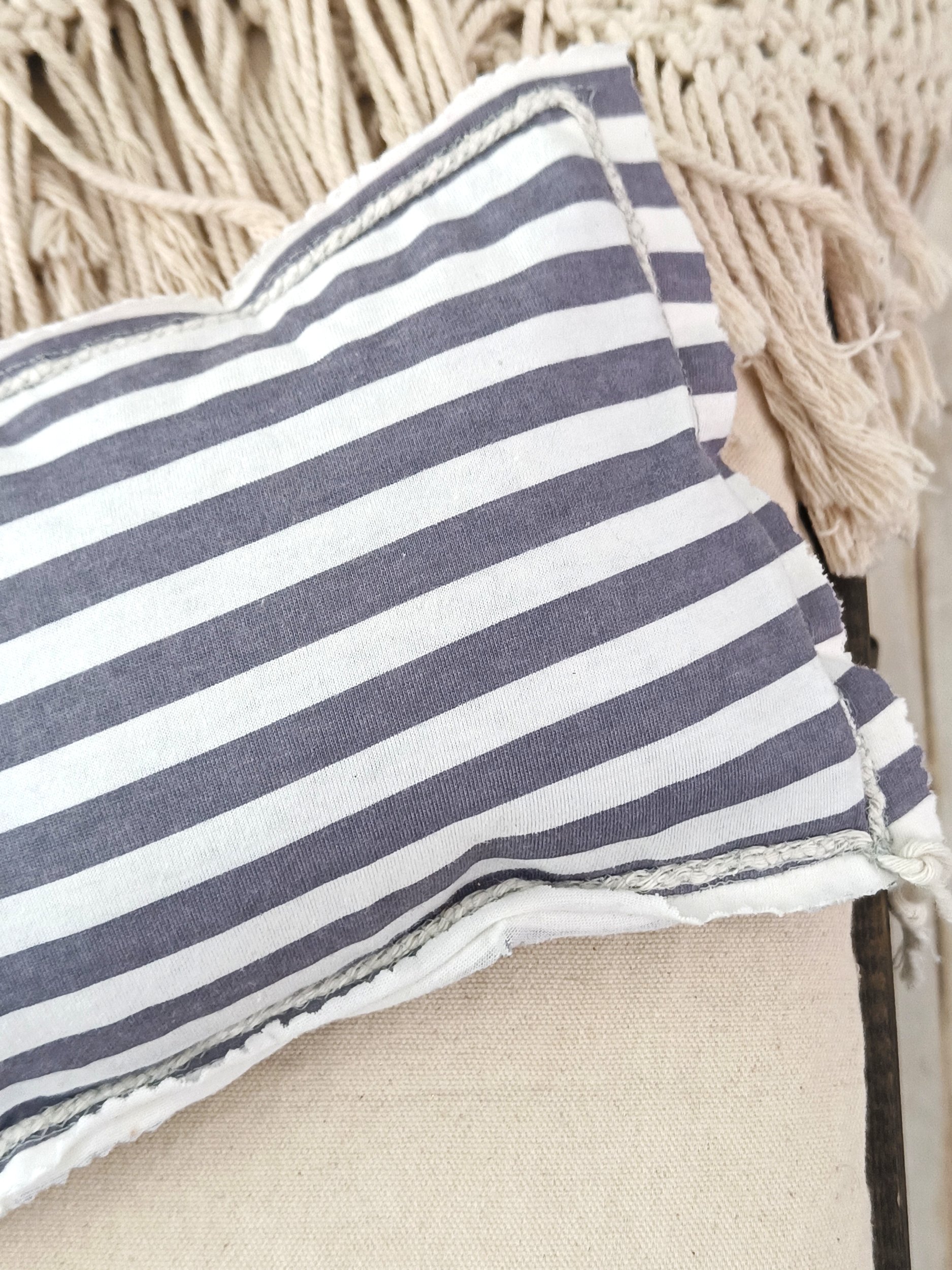 The pillow features a grey and off-white striped pattern that adds a refined and modern look to your photography setup. The neutral tones perfectly complement both minimalist and boho-inspired photo themes.