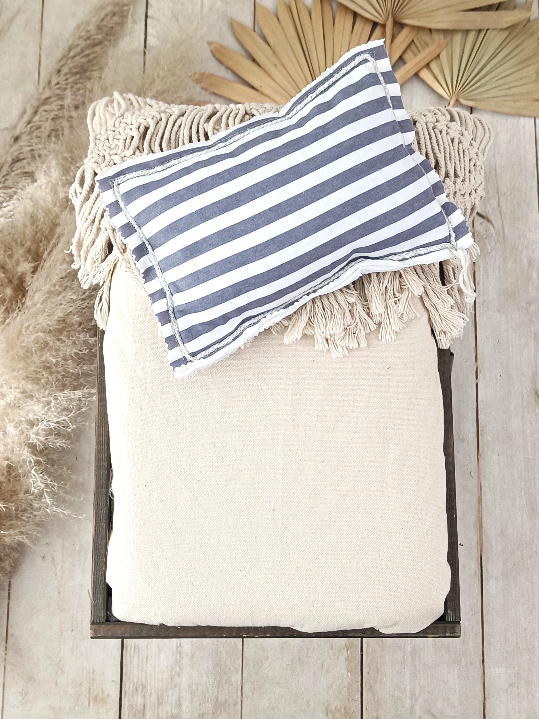 With this handcrafted striped posing pillow, every image radiates softness, style, and balance. Perfect for photographers who love neutral tones and cozy textures in their newborn setups.