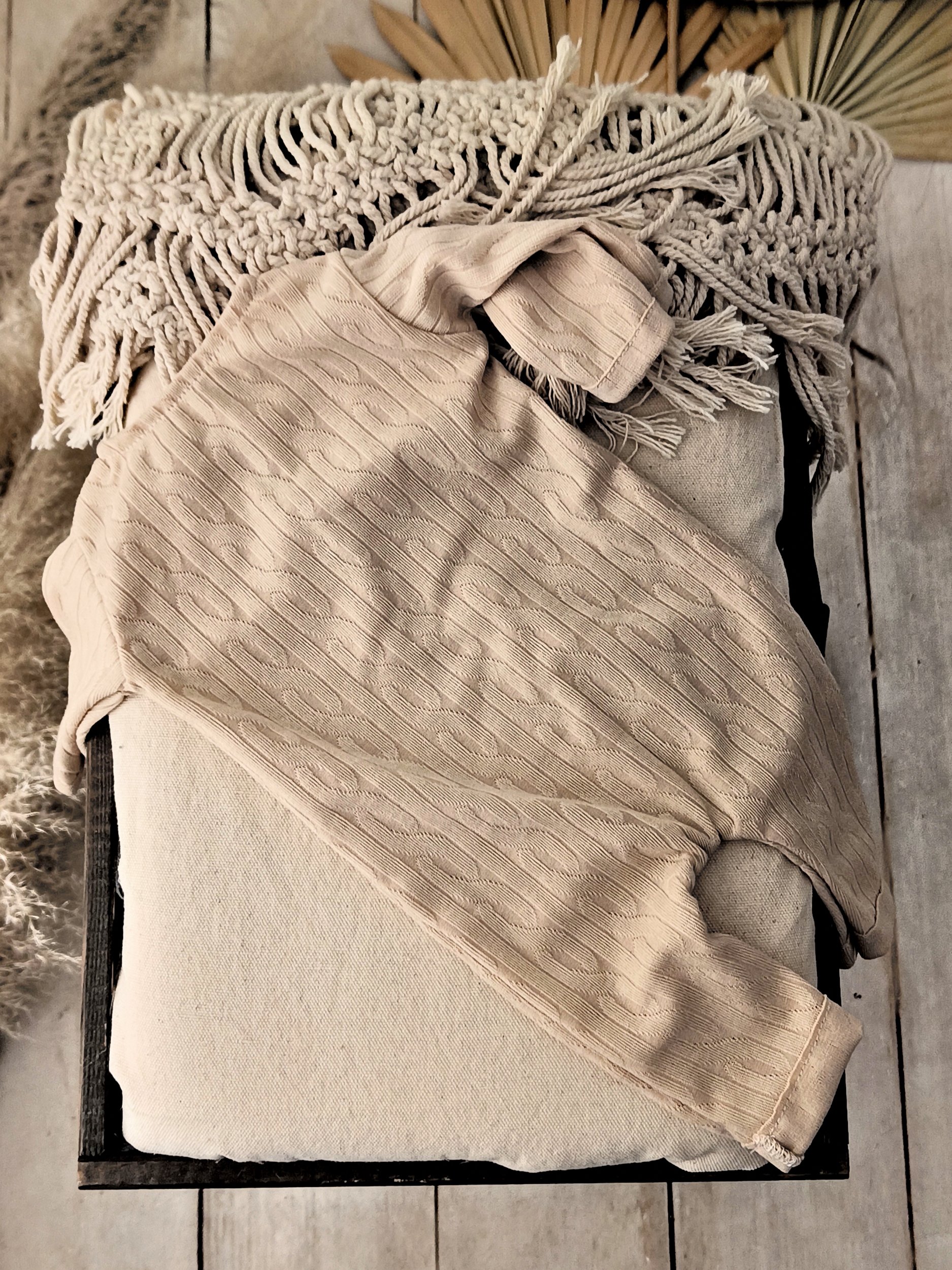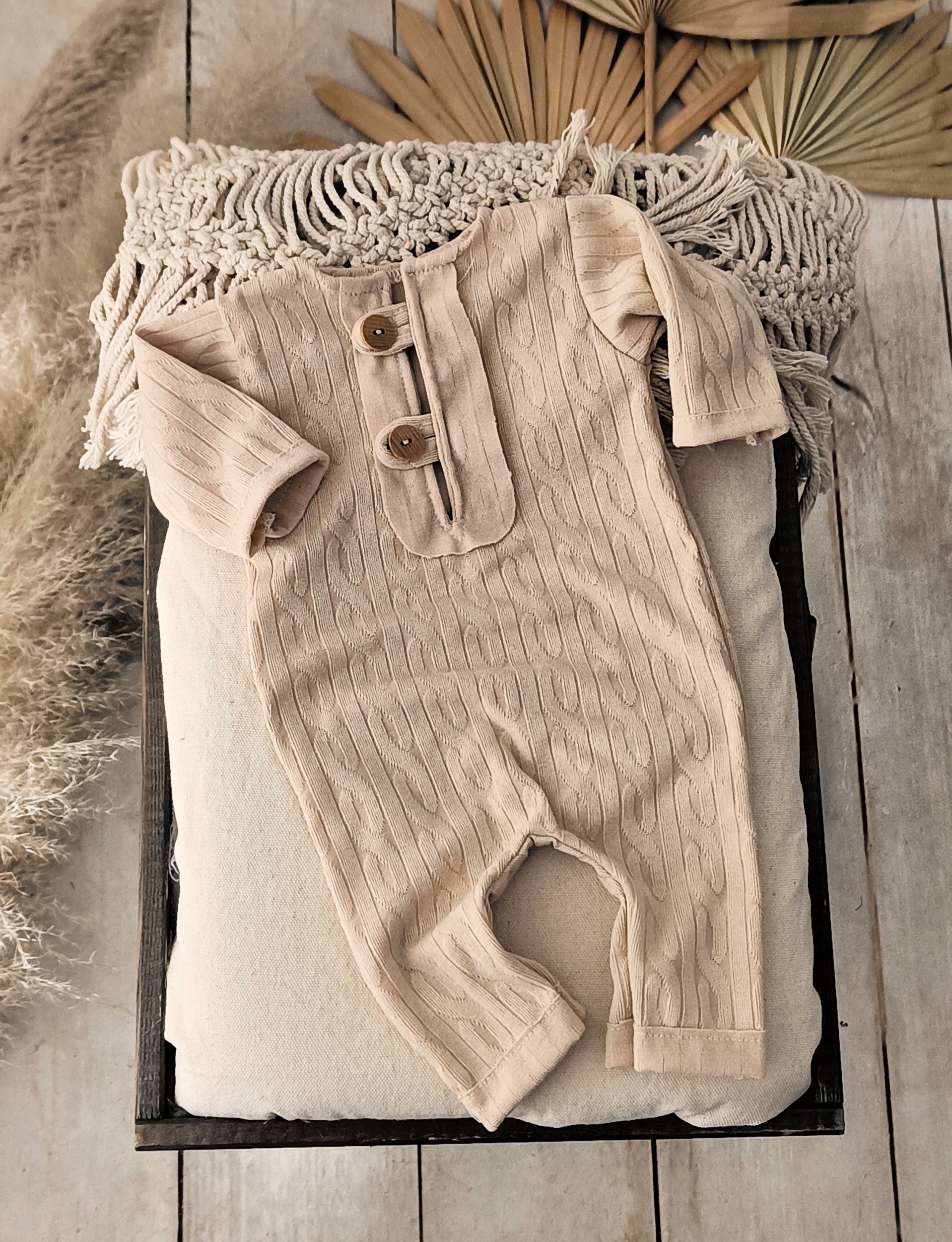 Designed with a minimalist approach, this photography outfit highlights the natural beauty of the infant. The neutral tones and classic style ensure that your newborn portraits remain stylish and timeless for years to come.