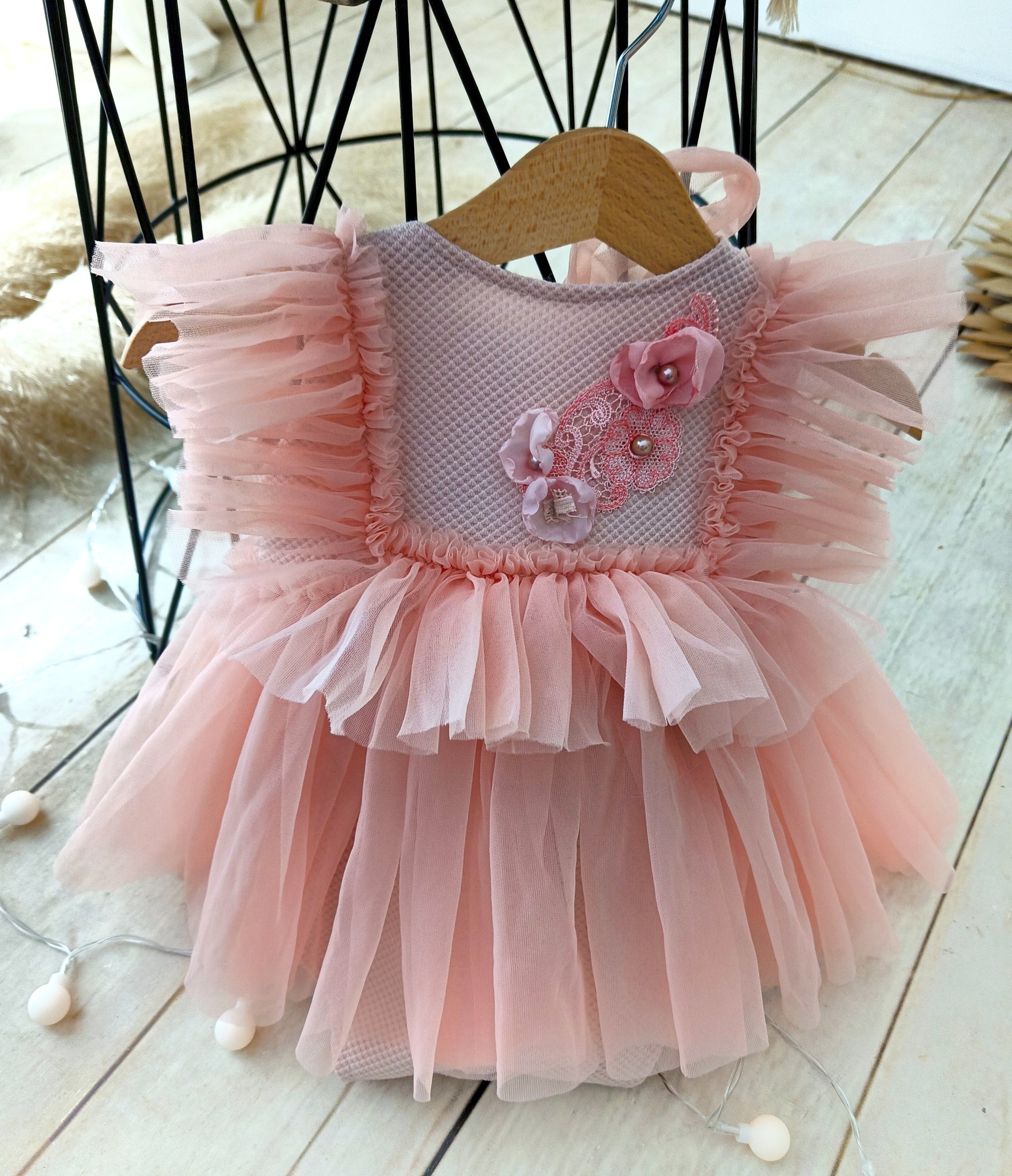 Baby Girl Photo Dress – Elowen – Peach Pink (12 Months)