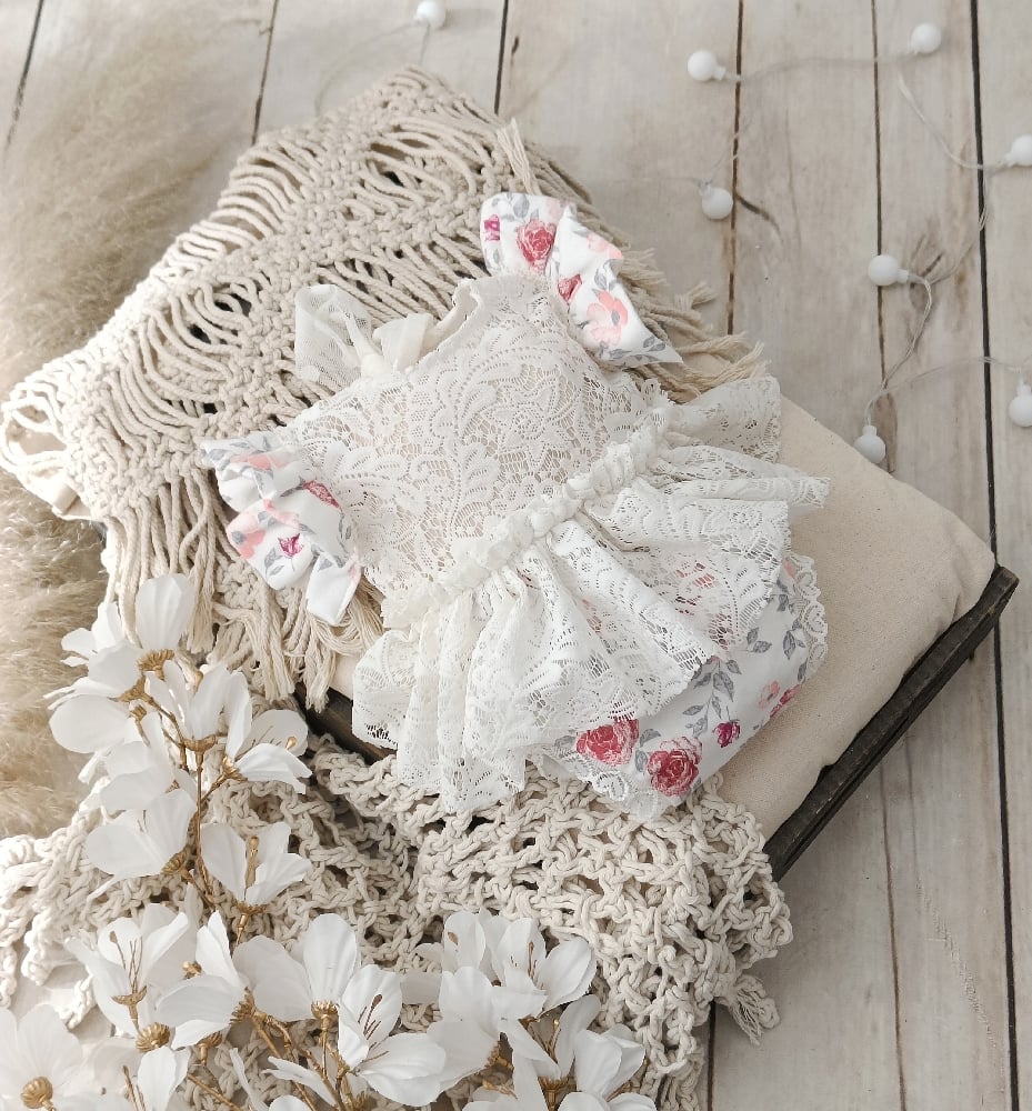 Photo prop | Newborn body-dress for photoshoot | Emily | floral | off white lace