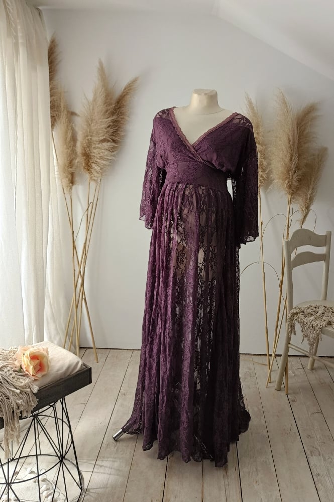 With this dark purple lace dress, every photo radiates beauty, femininity, and grace. A stunning addition to any maternity photographer’s wardrobe collection.
