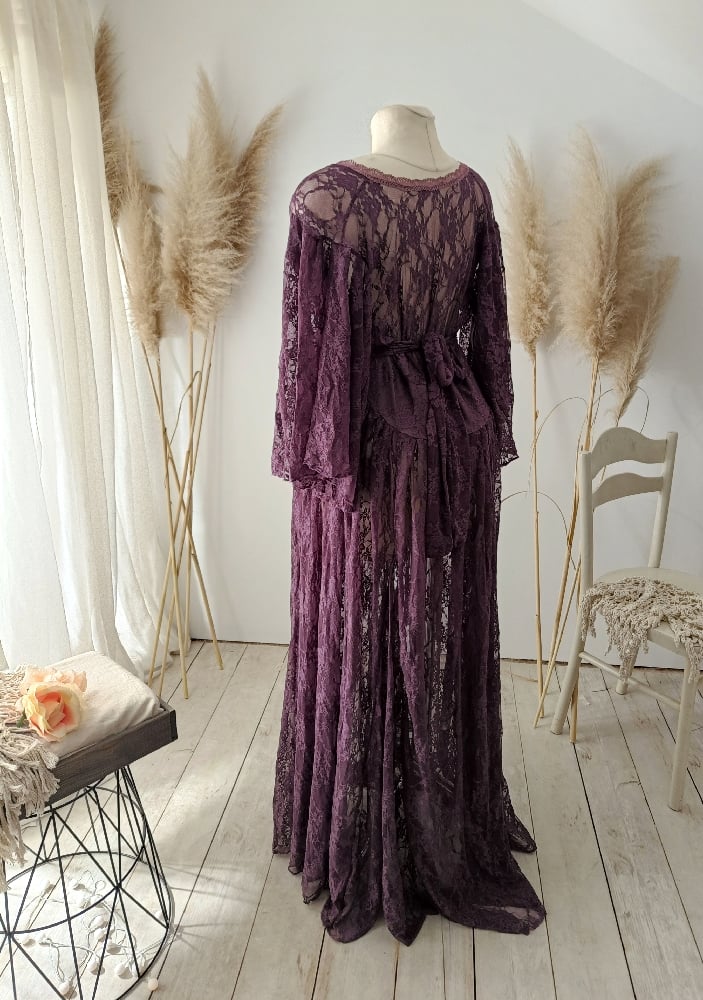 Create breathtaking maternity portraits with our handcrafted Dark Purple Lace Maternity Dress. Designed to fit beautifully on every mom-to-be, this gown combines elegance, comfort, and adjustability — perfect for professional maternity photography. International shipping available to France, Germany, Italy, Spain, Austria, and other European countries.