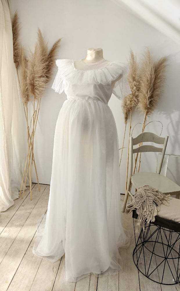 Capture stunning photos with our handmade photography dress. Features an elastic band under the top, open design for one leg, and a non-transparent fabric. Perfect for professional photoshoots. International shipping available to France, Germany, Italy, Spain, Austria and other European countries.
