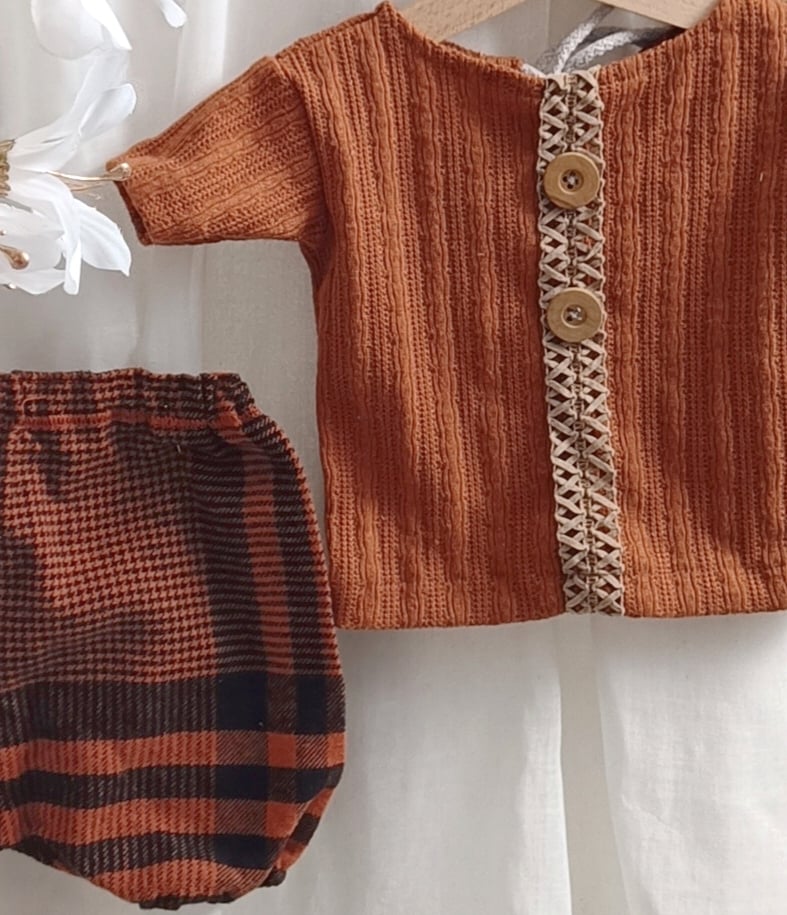 Capture adorable sitter photos with our handmade boys sitter set. Made of soft and elastic fabrics with a jumper tied at the back for easy dressing, paired with elastic panties. Perfect for professional photo sessions. Ready to ship. International shipping available to France, Germany, Italy, Spain, Austria and other European countries.
