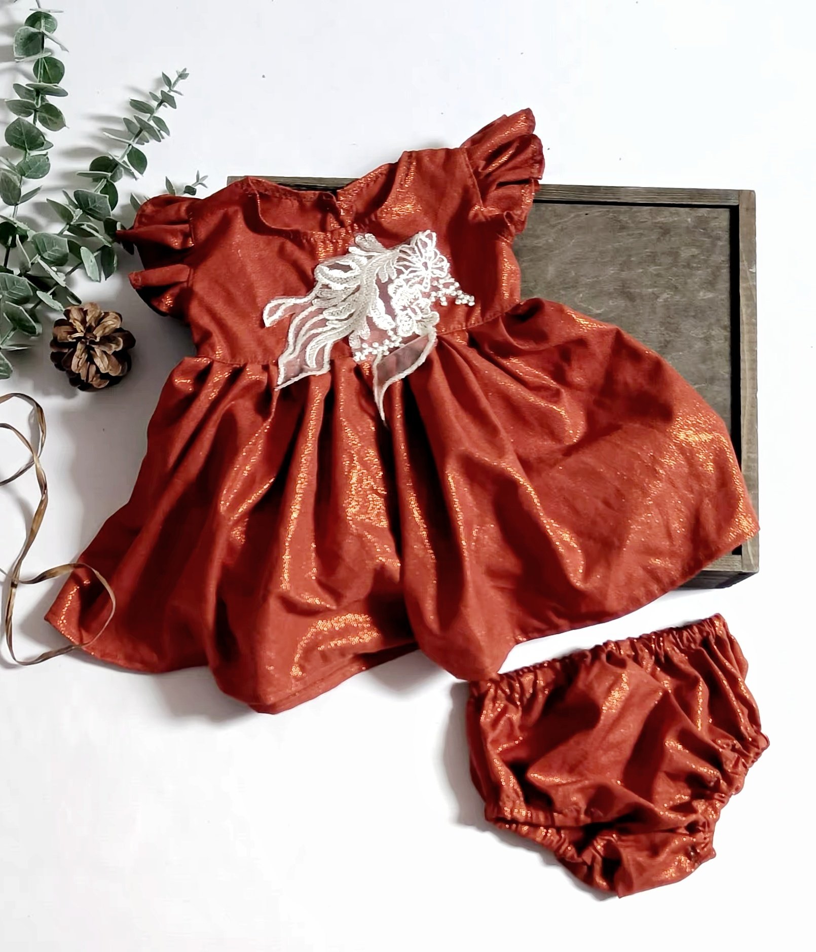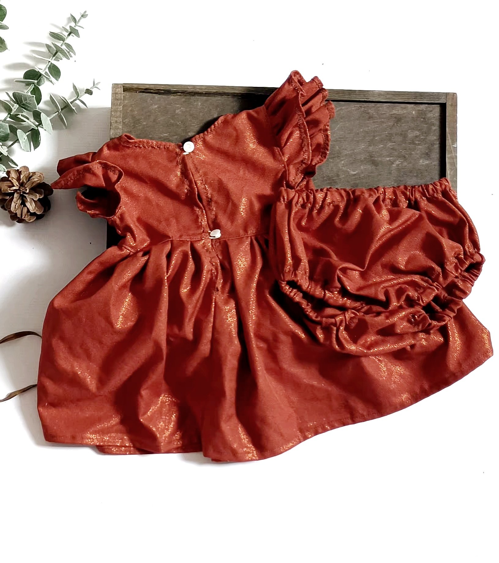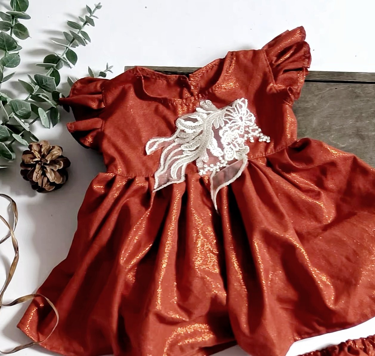Capture charming sitter photos with our handcrafted 9-12 months photography set. Includes a dress and matching panties made of soft and elegant fabrics in a glowing dusty orange color. The dress is fully open and fastened with buttons at the back for easy dressing and comfort. Perfect for professional photo sessions. International shipping available to France, Germany, Italy, Spain, Austria and other European countries.