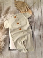 The romper is decorated with three front buttons, adding a touch of elegance and style. These small details make each photo look timeless and sophisticated while keeping a natural, classic look.