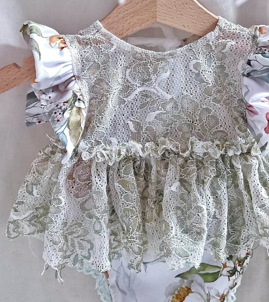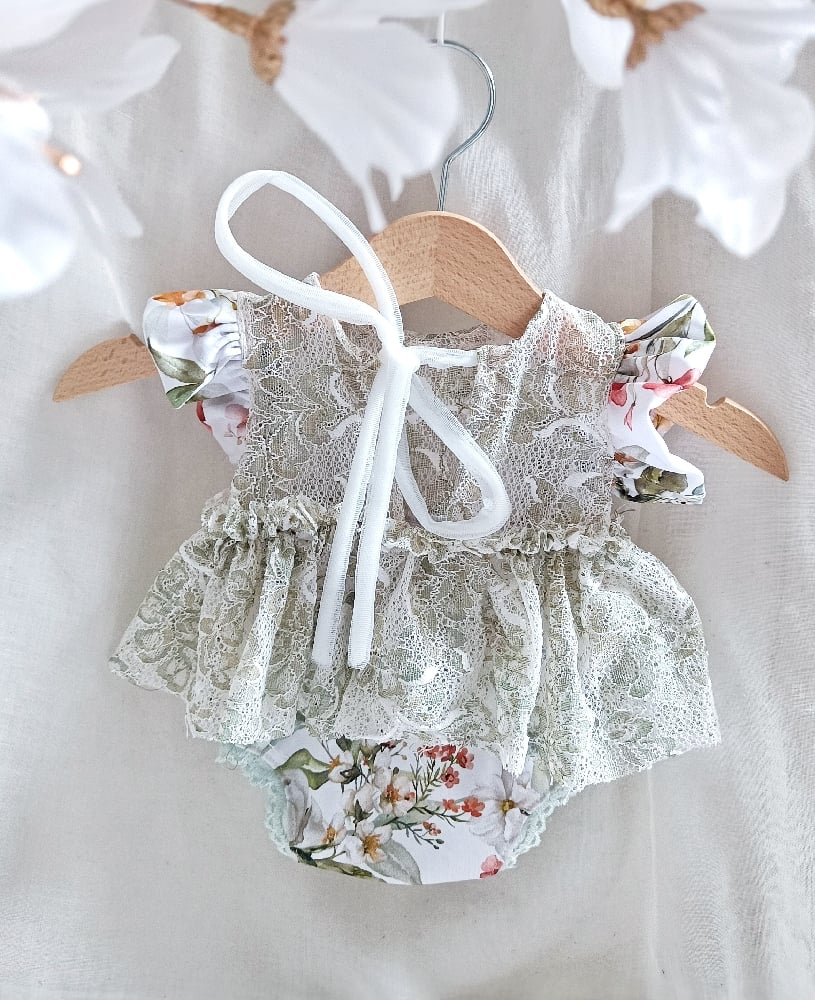 Newborn girls body-dress for photoshoots | Emily | floral sage