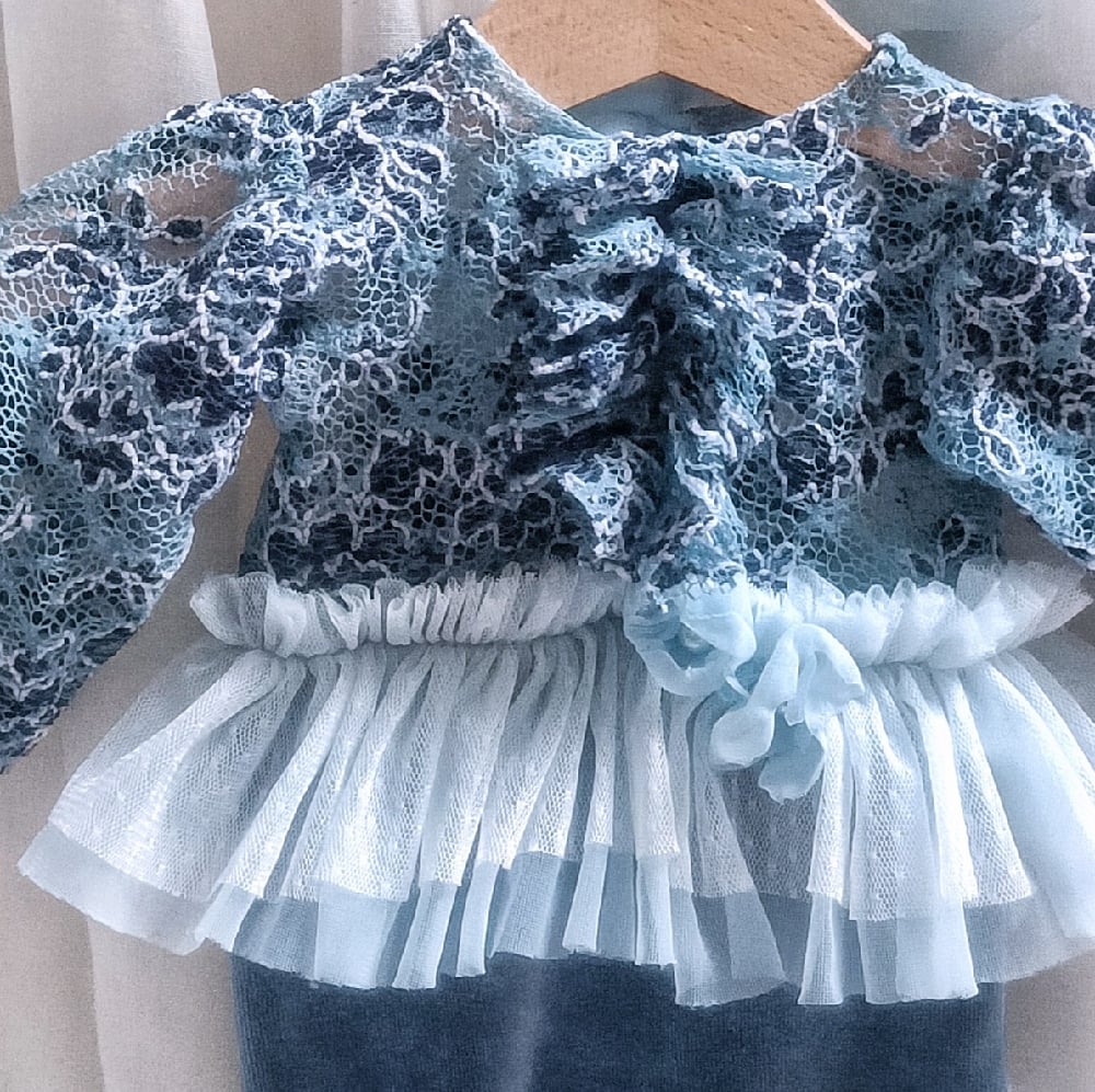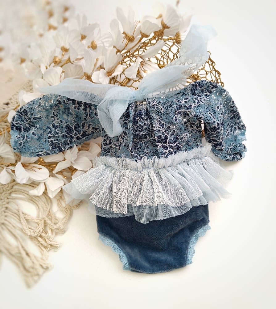 Designed with elegance in mind, this body-dress highlights your little model's natural beauty. The blue tones and classic style ensure that the first photos of newborn baby will remain timeless and stylish.