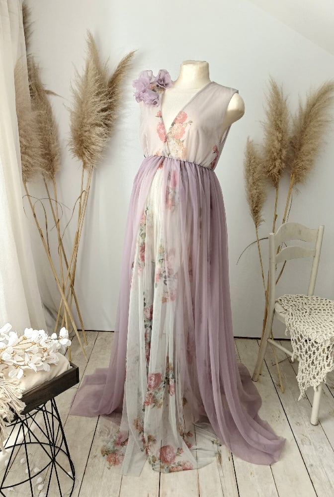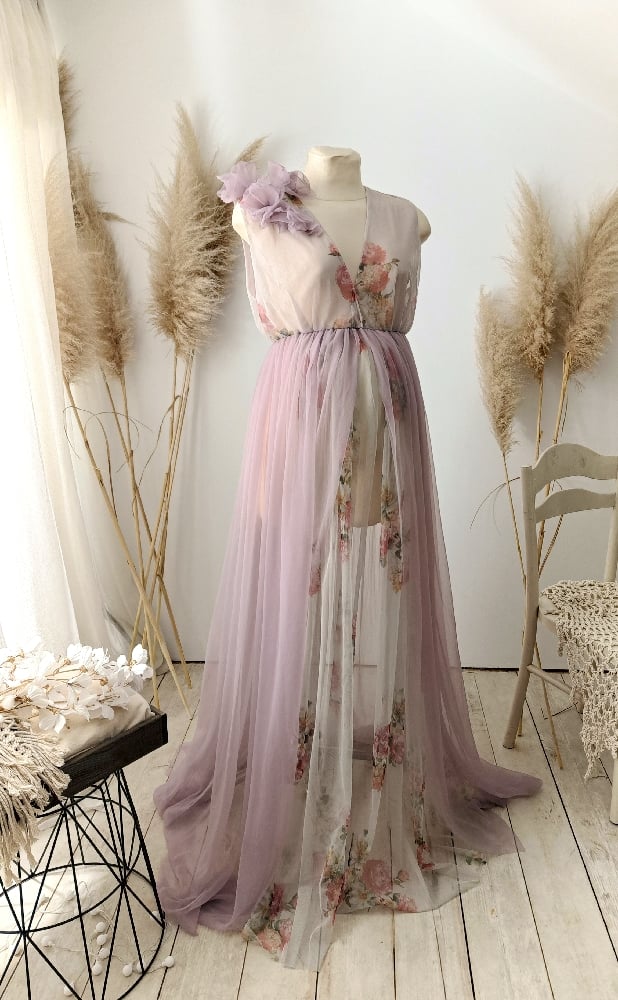 This handcrafted photoshoot dress is designed for maternity and portrait photography sessions, offering a soft and flattering silhouette. The elegant cut and flowing fabric make it perfect for creating natural, airy and timeless images.