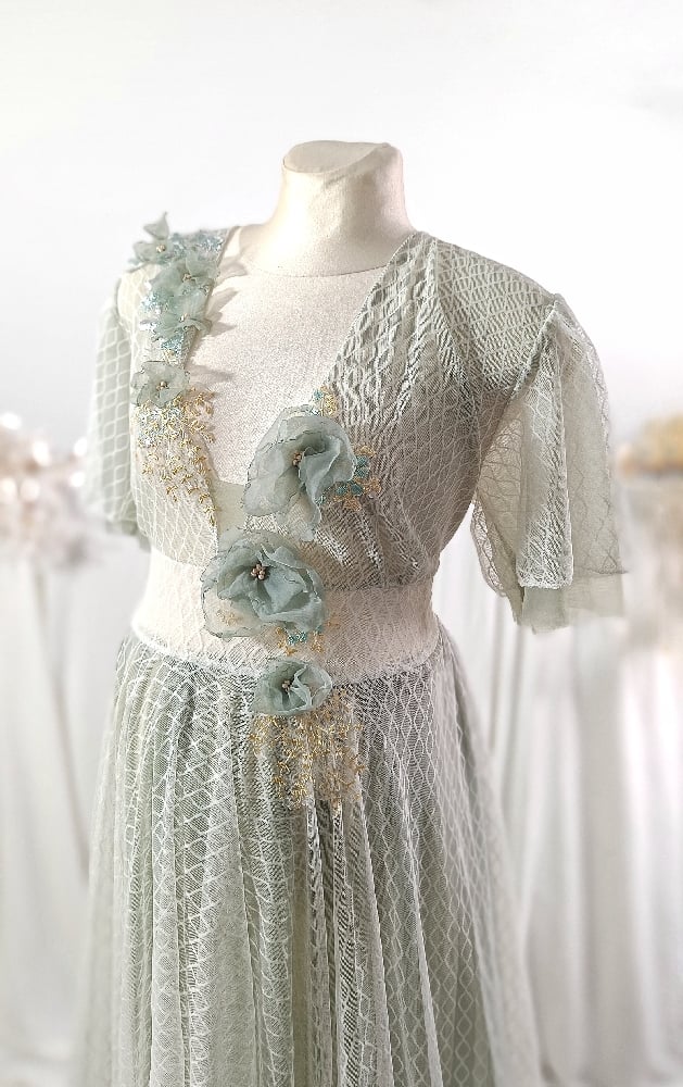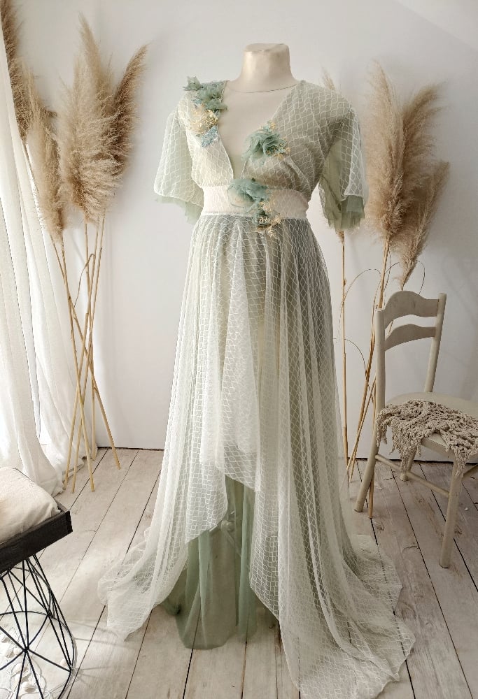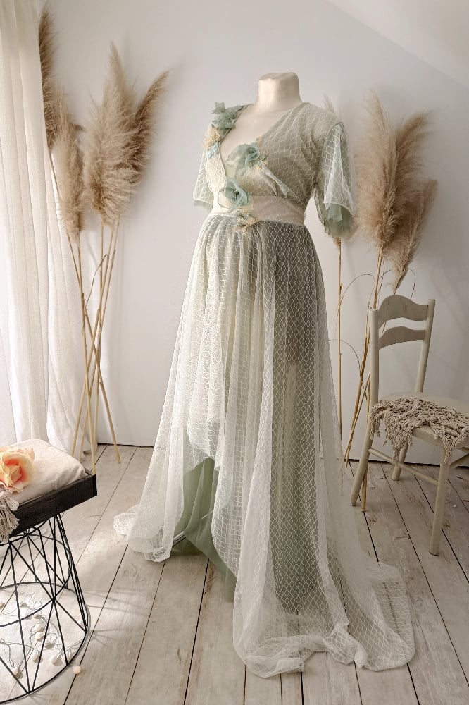 Photoshooting tulle dress Abriana | size S-M| sage and off white | flowers