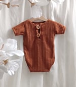 Each bodysuit is handmade with care, ensuring exceptional quality and a unique, timeless look. Its soft fabrics and simple design make it a perfect photography prop for professional baby photo sessions.