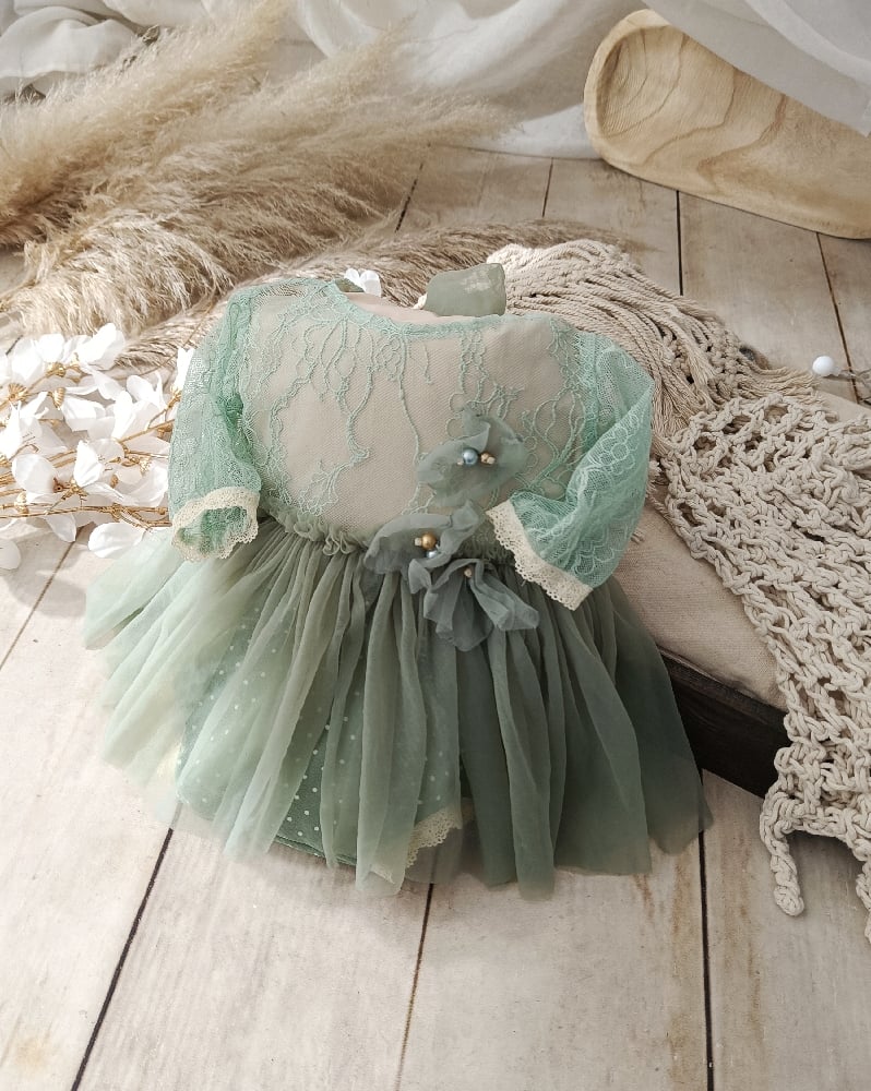 With this sage green body-dress, each sitter session becomes timeless and full of natural charm. Designed to highlight the innocence and softness of your little one — perfect for elegant, boho-inspired photography.