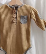 Capture adorable baby photos with our handmade boys bodysuit. Made of soft and elastic fabric with three front buttons for easy dressing and comfort, featuring melange additives for a stylish look. Perfect for professional photo sessions. International shipping available to France, Germany, Italy, Spain, Austria and other European countries.