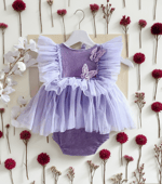 Adorned with multiple tulle frills and delicate butterfly decorations, this body-dress adds a charming and magical touch to every little princess portrait.