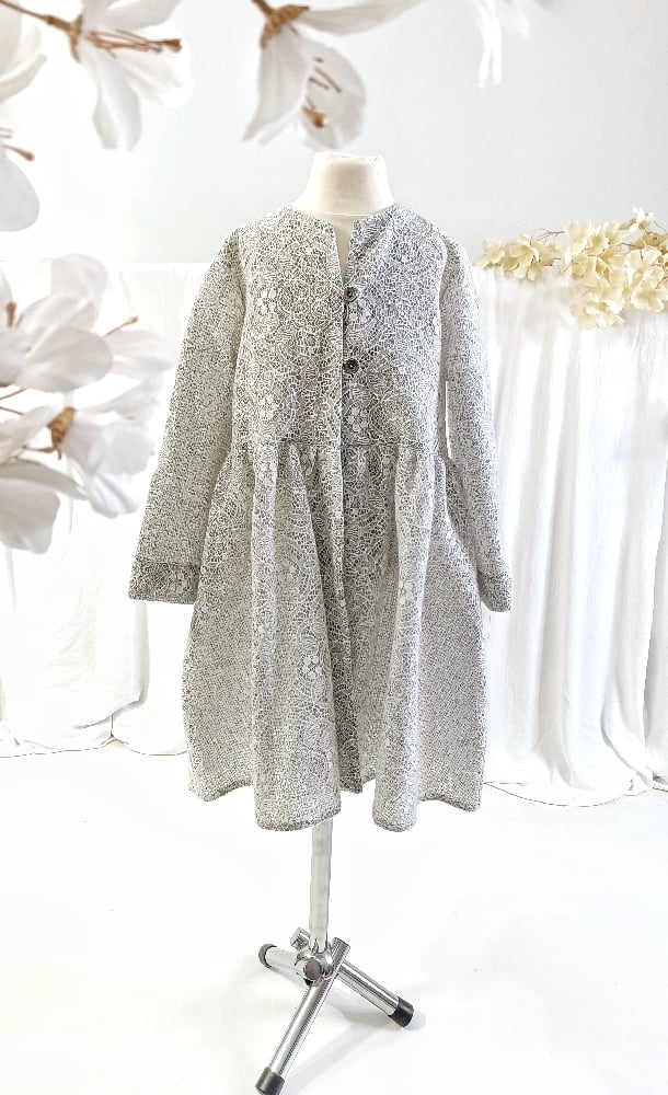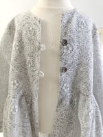 Create magical winter and holiday photos with our handcrafted photography coat for children aged 6–8 years. Made from delicate white lace layered over a grey fabric for a beautiful decorative effect, the coat is fastened at the front with two buttons for easy dressing. Elegant and timeless, it is the perfect styling piece for winter and Christmas photoshoots. International shipping available to France, Germany, Italy, Spain, Austria and other European countries.